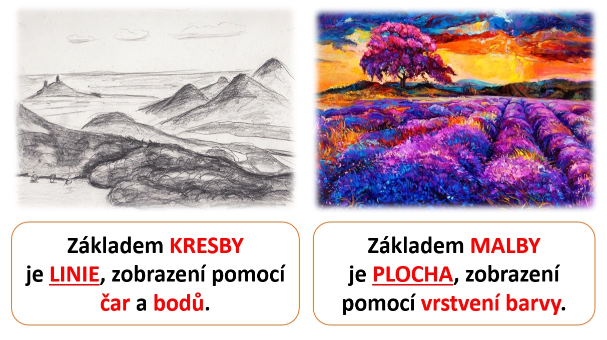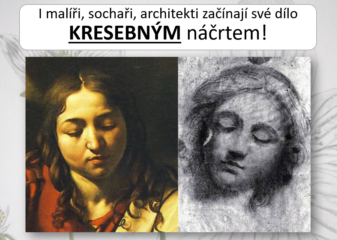 - NÁČRT/ČRTA = zjednodušená kresba motivu