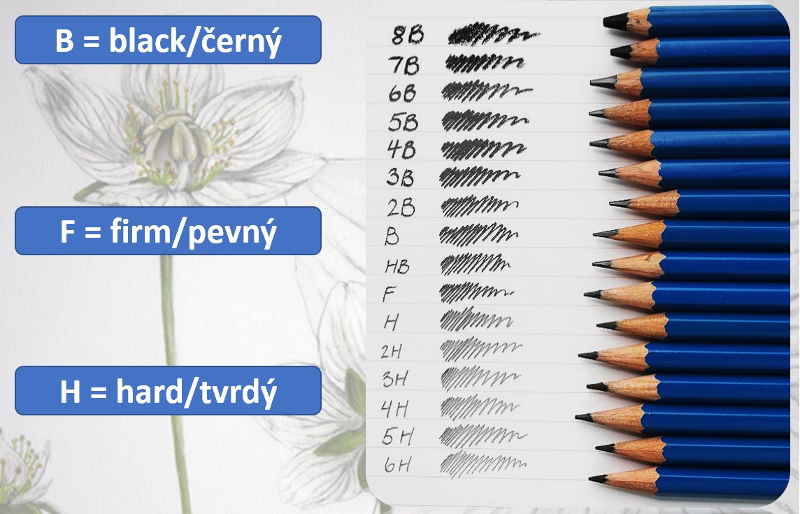 Měkké tužky jsou tedy značeny písmenem B (black = černý),